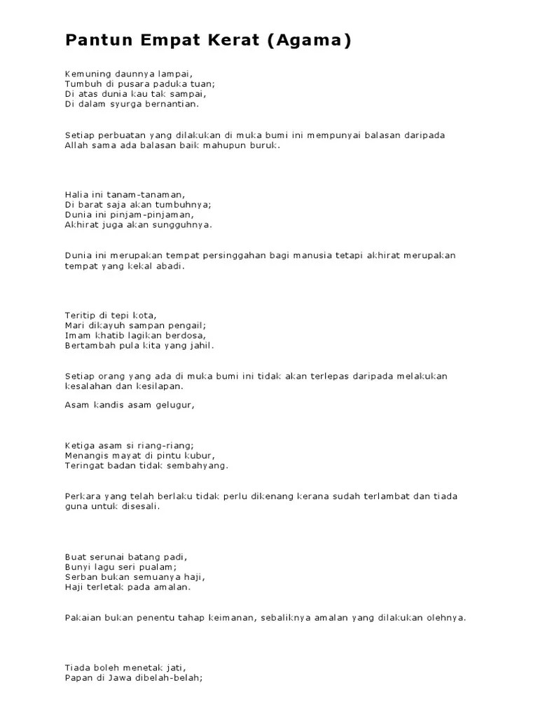 Hormati dan kasih sayang pada ibu bapa. Pantun 4 kerat nasihat dan maksud. Contoh pantun 4 kerat kasih sayang. Pantun kasih sayang ibu bapa worksheet. Jasa ibu bapak tak terhitung,. Indramayu kota mangga, bambu kebun dibuat tangga.